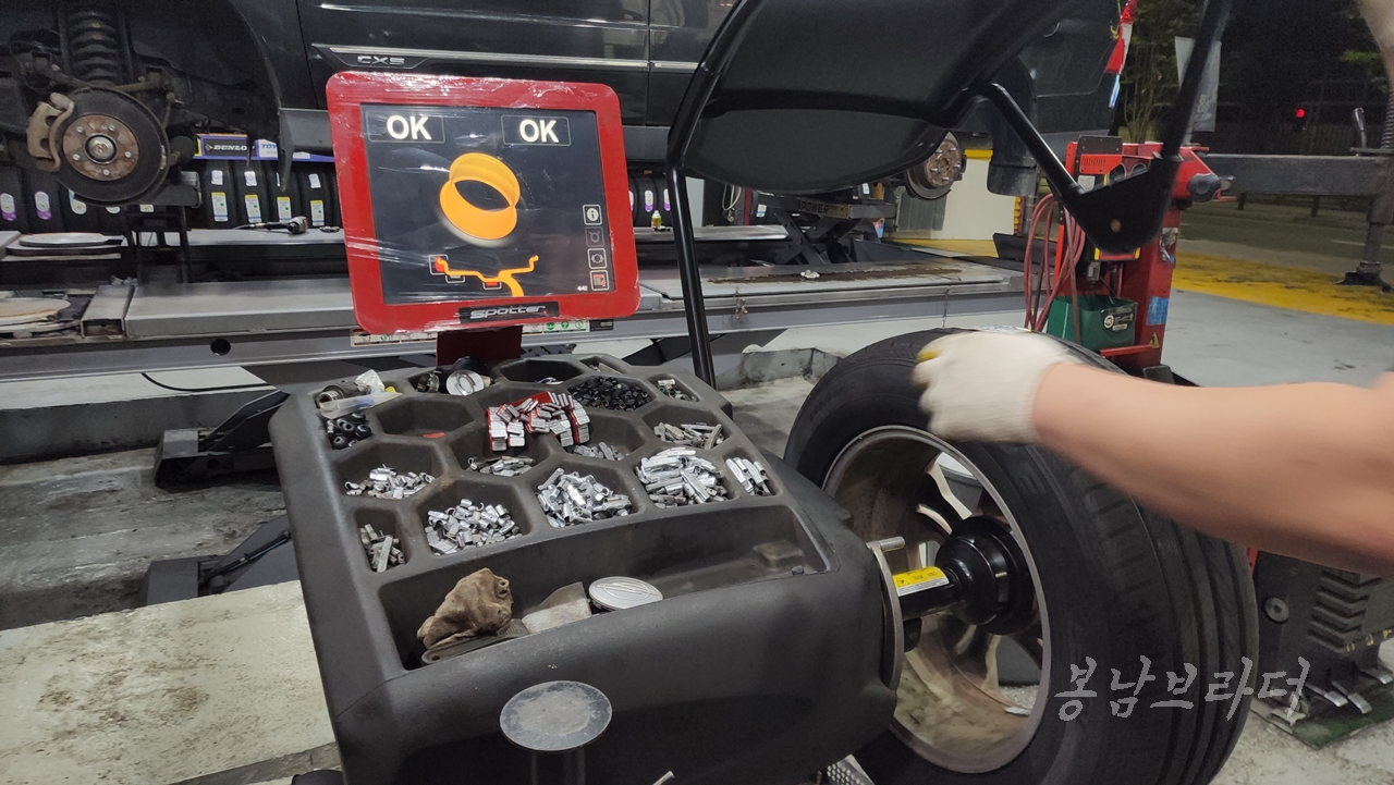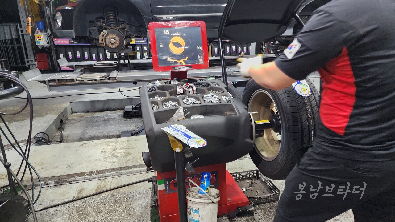 휠에 새 타이어가 다 달리고 타이어 훨 밸런스를 잡아 줍니다. 탱큐^^