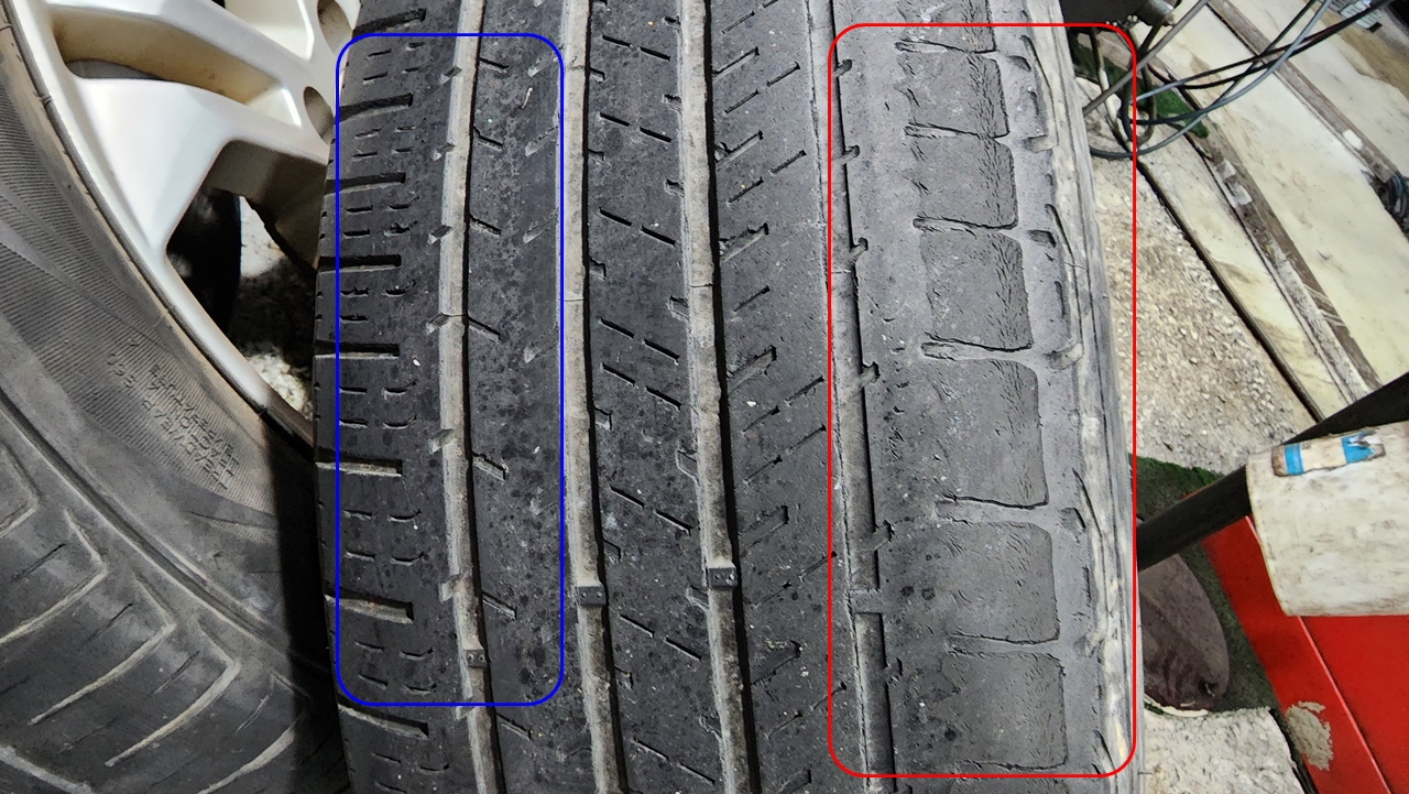 앞타이어 좌,우 다 한쪽만 마모가 심합니다. 닮지 않는 쪽이 안깝네요 ^^